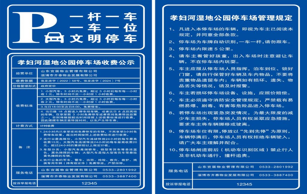 孝妇河湿地公园停车场精细化管理温馨提醒: